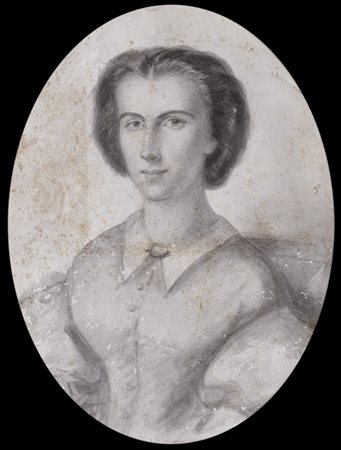 Lambert (sec. XIX) "Ritratto di gentildonna" tecnica mista su carta ovale (cm...
