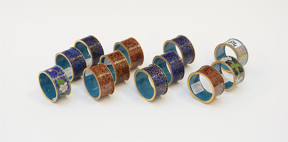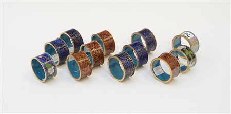 Dodici portatovaglioli in metallo cloisonné con decorazione floreale (d. 5,5...