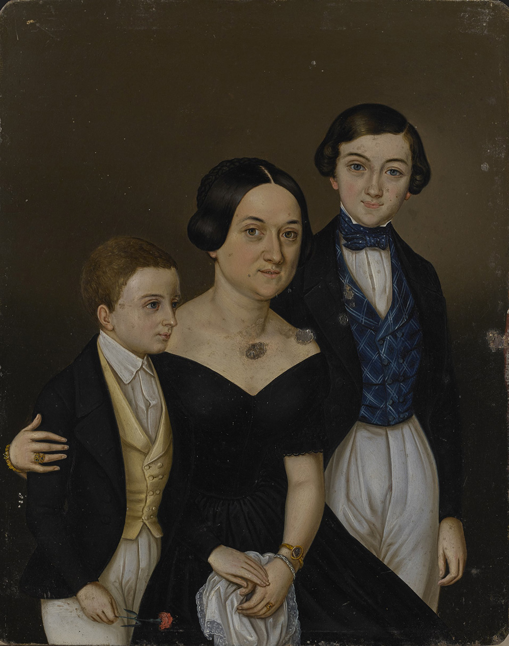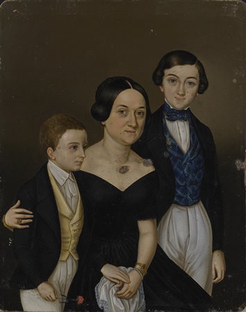 Maestro del sec. XIX "Ritratto di famiglia" olio su rame (cm 18,5x14,5) In...