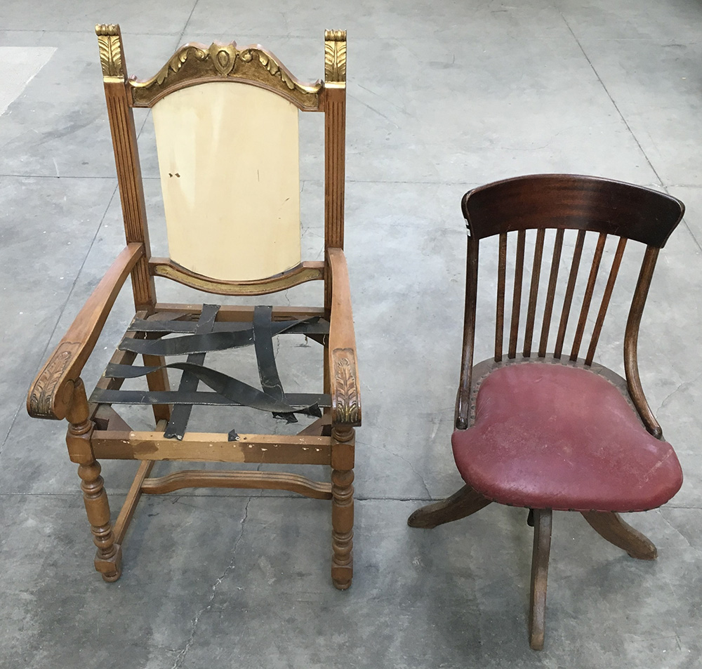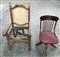 Lotto composto da una sedia girevole da ufficio con dorsale a listelli e un fusto di poltrona (difetti e mancanze)