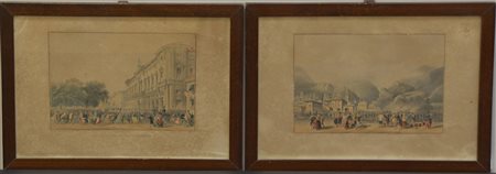 Coppia di stampe a colori del sec. XIX raffiguranti scene dalle guerre...