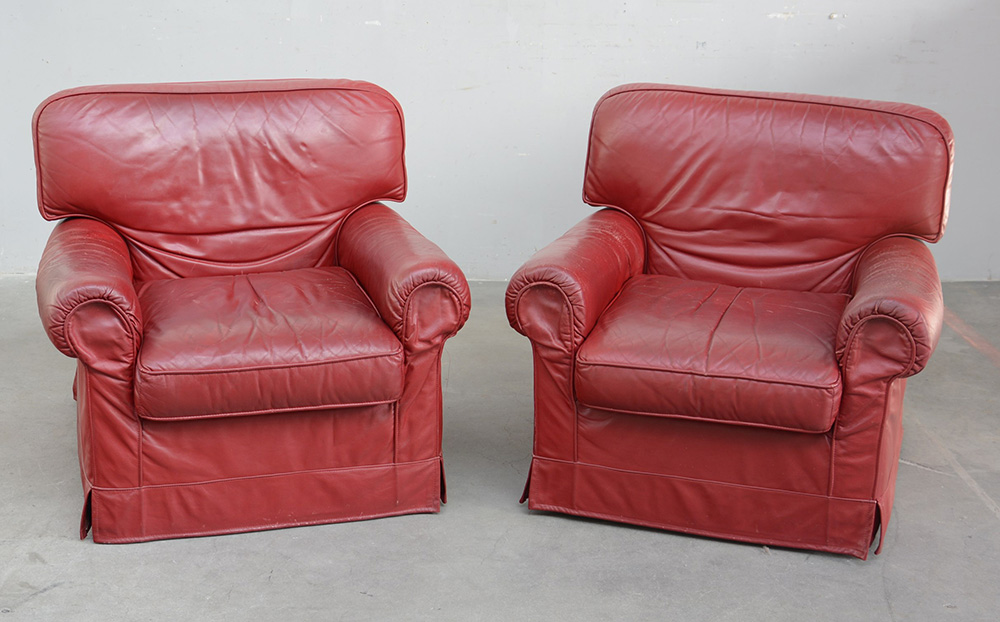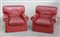 Coppia di poltrone imbottite rivestite in ecopelle rossa (difetti)