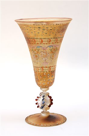 Manifattura di Murano del secolo XX grande bicchiere in vetro decorato ad "affresco" (h cm 29)