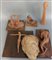 Lotto di sei sculture in terracotta di soggetto vario, alcune su supporto ligneo, misure differenti (difetti)