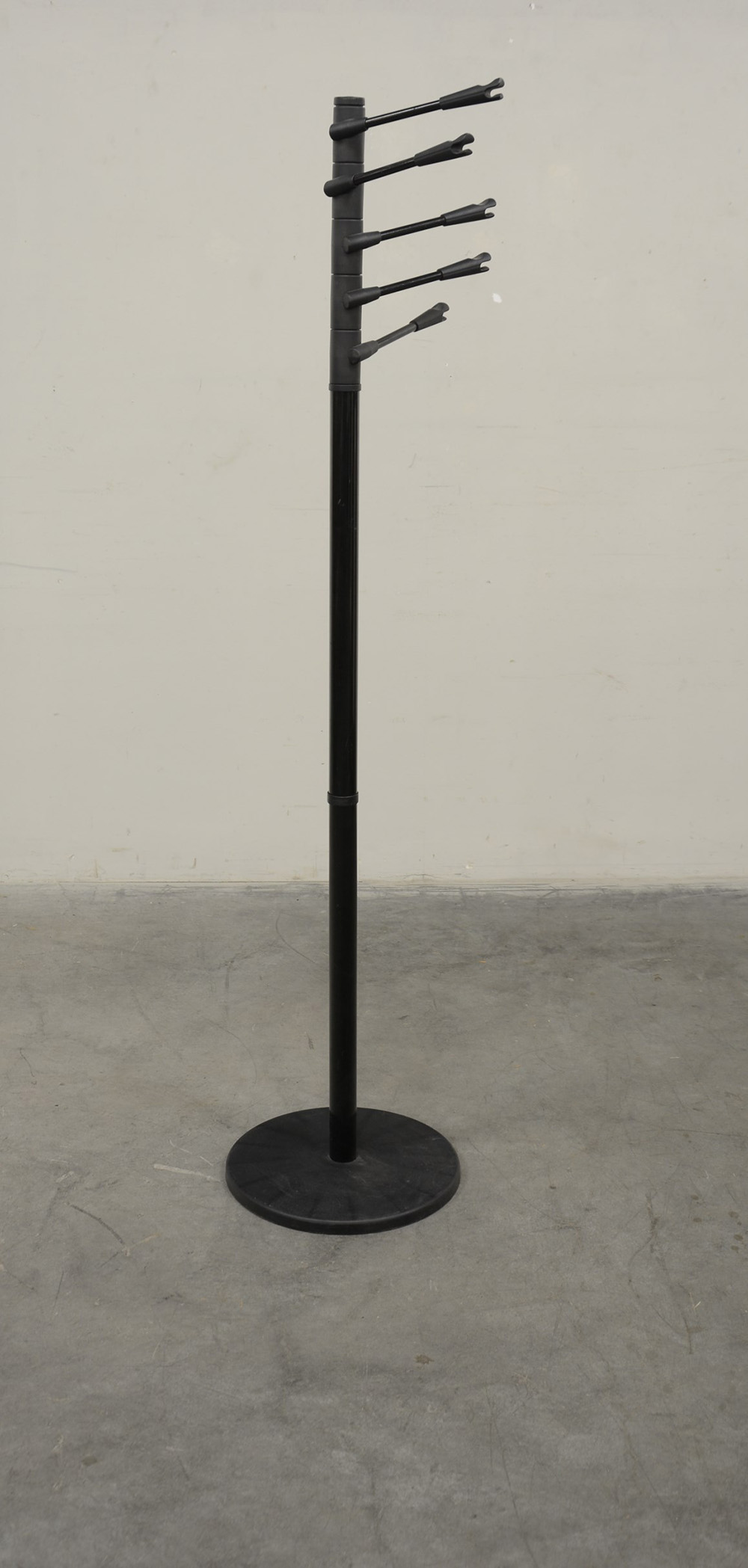 Appendiabiti da terra in metallo verniciato nero e materiale plastico. Appendini girevoli (h cm 172) (lievi difetti)