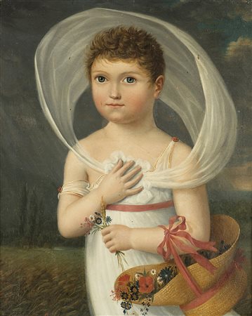 Scuola del sec. XIX "Figura di fanciulla con fiori" olio su tela (cm 55x44)...