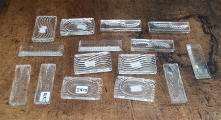 Gruppo di quindici formelle diverse in vetro soffiato in stampo. Firmate a punta (lievi difetti)
