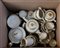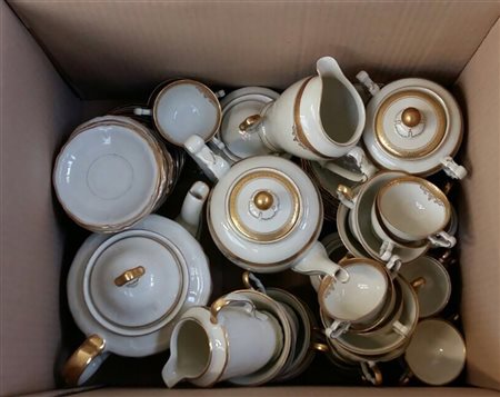 Manifattura tedesca, cartone contenente due parti di servizi da tè e caffè in porcellana con filettatura in oro (lievi difetti)