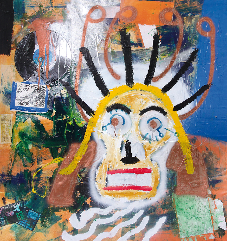 PAUL KOSTABI Whittier (California) 1962 Fight the fight, 2006 olio, tecnica mista e collage su tela cm. 132x121, firma in basso a sinistra, firma, titolo e anno al retro, dichiarazione d'autenticità dell'artista su certificato della Follin Gallery (New York) allegato.