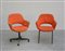 Una sedia e una poltroncina girevole da ufficio in metallo laccato nero e tessuto rosso. Produzione Velca. Italia, anni 70 (cm 62,5x83x57) (difetti)