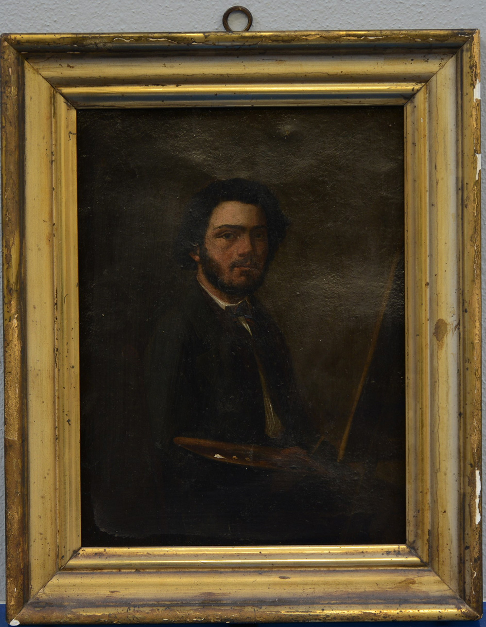 Scuola del sec XIX. "Pittore nello studio" olio su cartoncino (cm 28x21) In cornice (difetti)