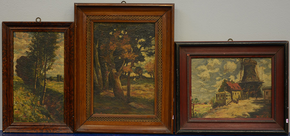 Lotto di tre dipinti ad olio raffiguranti paesaggi misure diverse, firmati N...