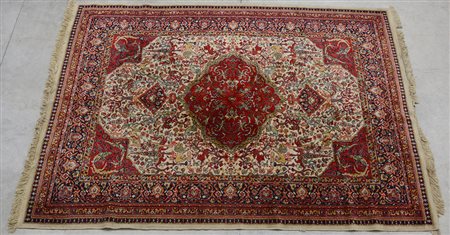 [Tappeti] Tappeto meccanico con decoro dell'Eden con medaglione a fondo rosso su campo bianco (cm 232x171)(difetti)