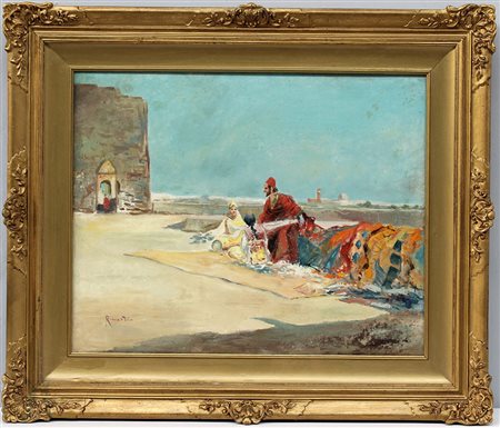 Oscar Ricciardi (Napoli 1864 - 1935)"Scena araba" olio su tela (cm 40x50)...