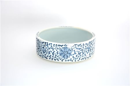 Manifattura orientale. Ciotola in porcellana bianca e blu decorata a motivi floreali