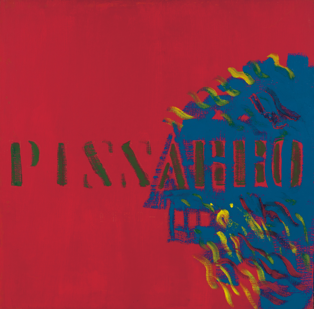 TANO FESTA Roma 02/11/1938 - Roma 09/01/1988 Omaggio a Pissarro, 1981 acrilico su tela cm. 100x100, firma e anno al retro, opera registrata presso l'Archivio Tano Festa a cura dello Studio Soligo (Francesco Soligo) come da dichiarazione su foto, certificato della Galleria Arte Rosso (Roma) allegato.