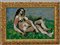 Ignoto, "Nudo femminile nel prato" verre-peint (cm 24x35,5) in cornice (lievi difetti)