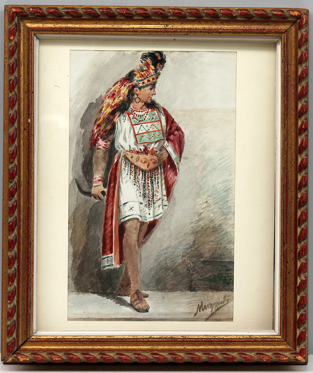 "Figura in costume" acquarello su carta (cm 28x17) firmato in basso a destra, in cornice