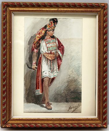 Giovanni Muzzioli (Modena 1845 - 1894)"Figura in costume" acquarello su carta...