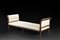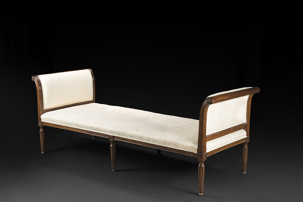 A faux leather three-seat walnut sofa, 18th century (defects)
