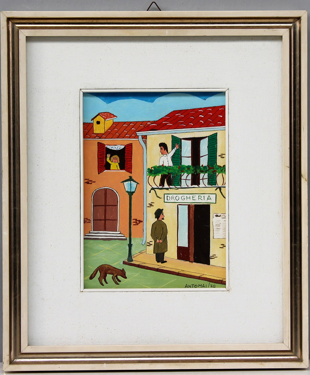 Antomai "Il saluto" olio su tela applicata su cartone (cm 24x18) firmata e...