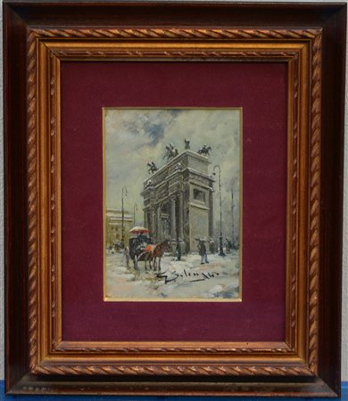 Ignoto "Arco della Pace" (cm 17x12) firmato Solenghi in basso al centro. In cornice