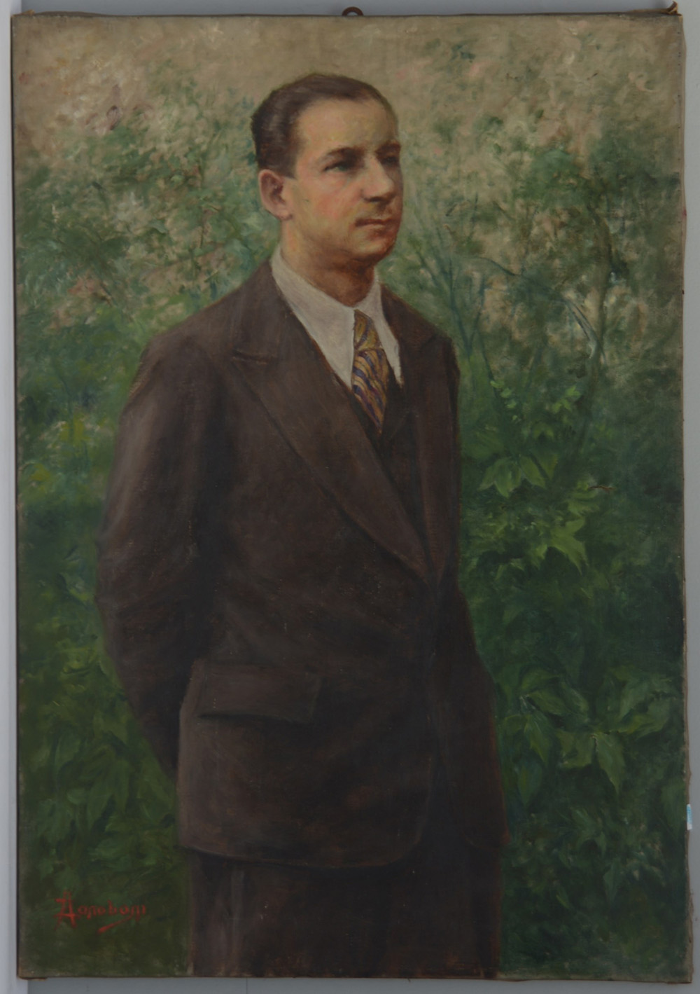 Alfredo Zanoboni (1863 - ?) "Ritratto nel parco" olio su tela (cm 80x60) Firmato in basso a sinistra (difetti)