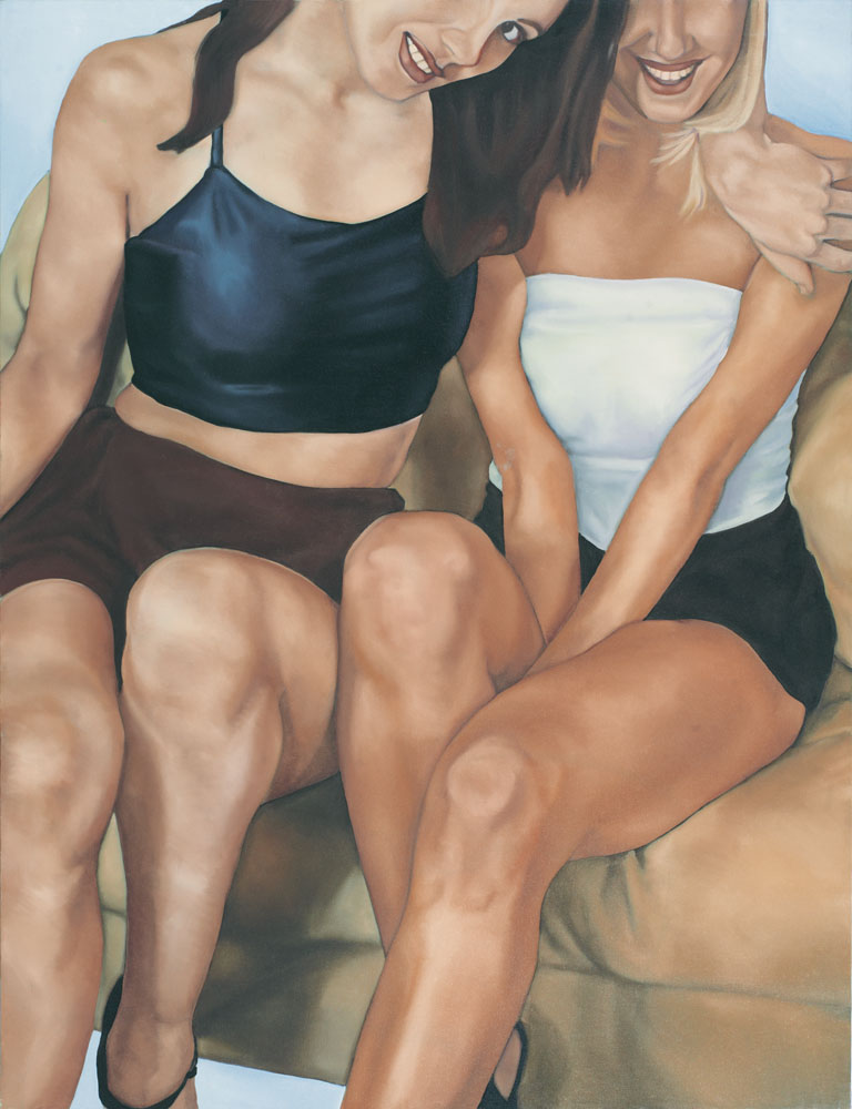 BARBARA NAHMAD Milano 1967 - Dana & Louise n° 2, 2001-2002, olio su tela cm. 170x130, titolo, firma e anno al retro, pubblicato su "Barbara Nahmad, Dana & Louise", a cura di Gianluca Ranzi, pagina 11, opera senza cornice.