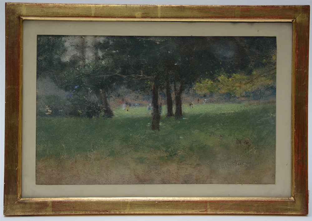 "Paesaggio con alberi" olio su cartoncino (cm 22x33) firmato in basso a destra, in cornice