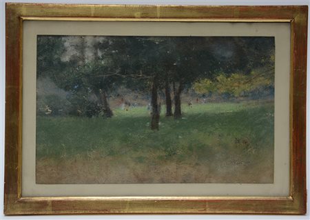 Giuseppe Casciaro (Ortelle 1861 - Napoli 1945)"Paesaggio con alberi" olio su...
