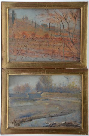 AA. VV. "Paesaggi" due dipinti ad olio su compensato (cm 16x22) in cornice