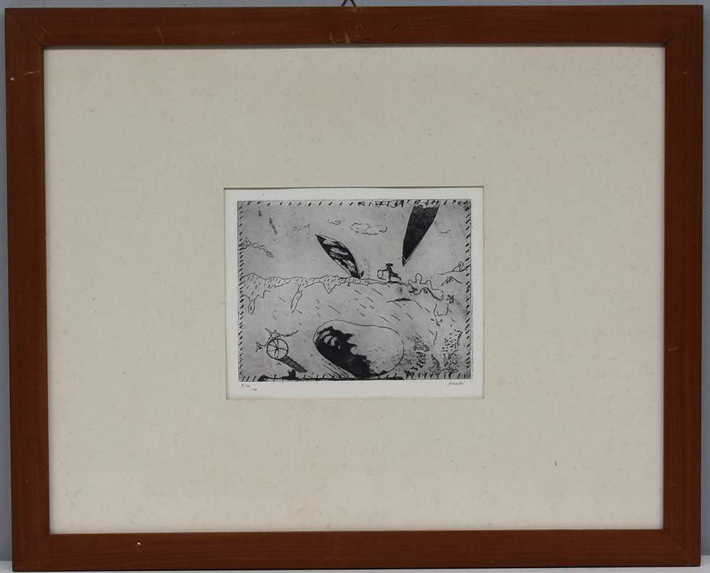 Firma indecifrata "Senza titolo" 1968, acquaforte (lastra cm 14x18)numerata 3/10, datata e firmata Ferzetti in basso a matita. In cornice