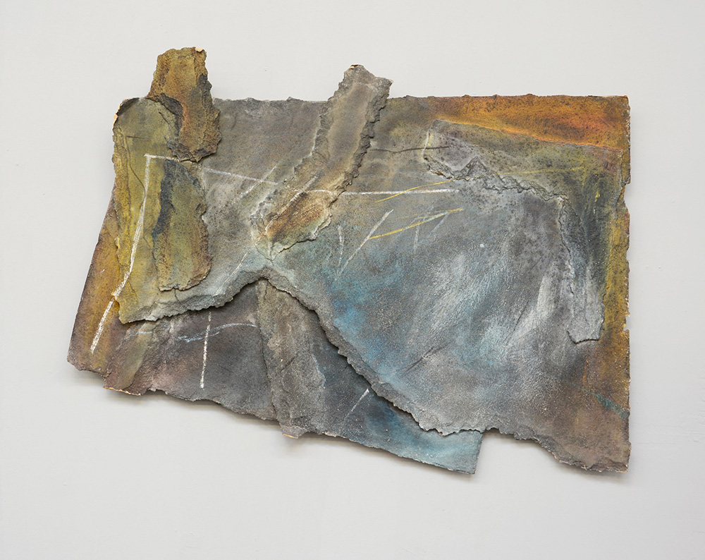 "Il pasto del drago" 1987, pastello a olio, acrilico e sabbia su cartone (cm 70x95 circa). Firmato, datato e iscritto al retro (difetti)