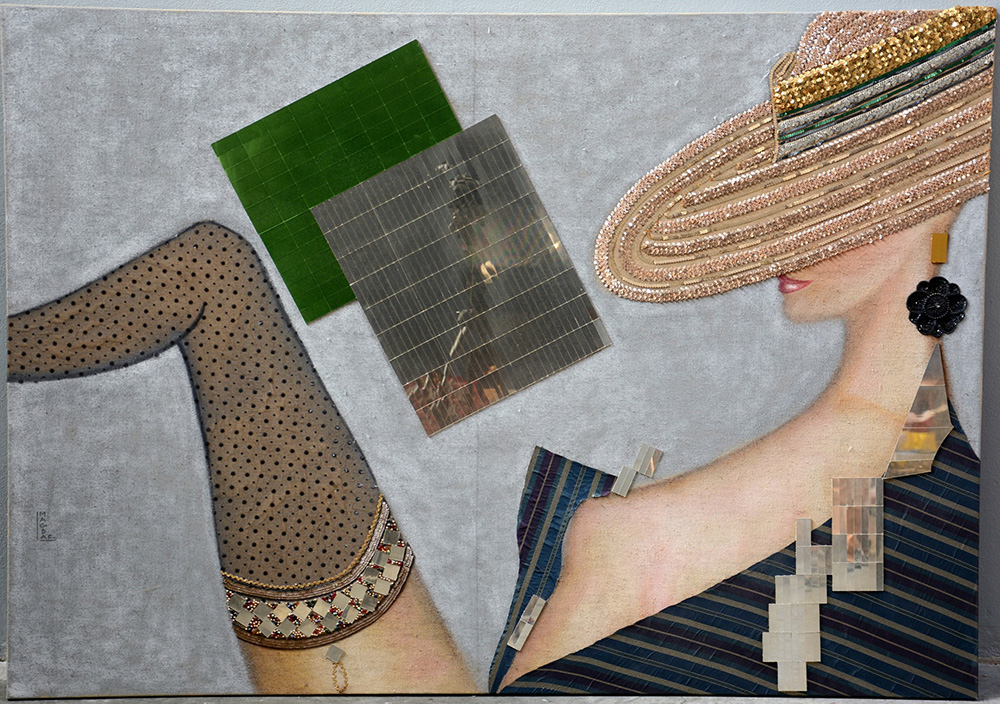 "Senza titolo" collage su tela (cm 120x171) firmato in basso a sinistra, iscritto e datato 1987 al retro