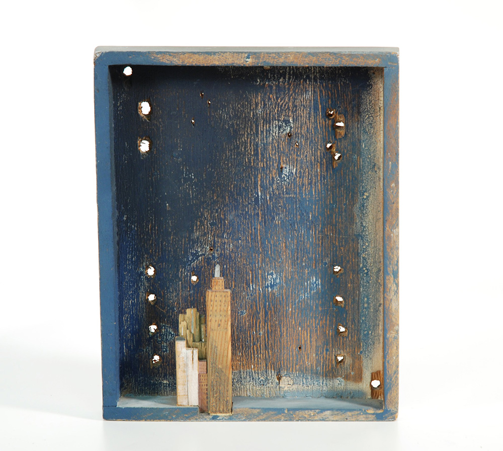 "Composizione" 1995 in legno policromo (cm 24,5x19) Firmata e datata sul fianco