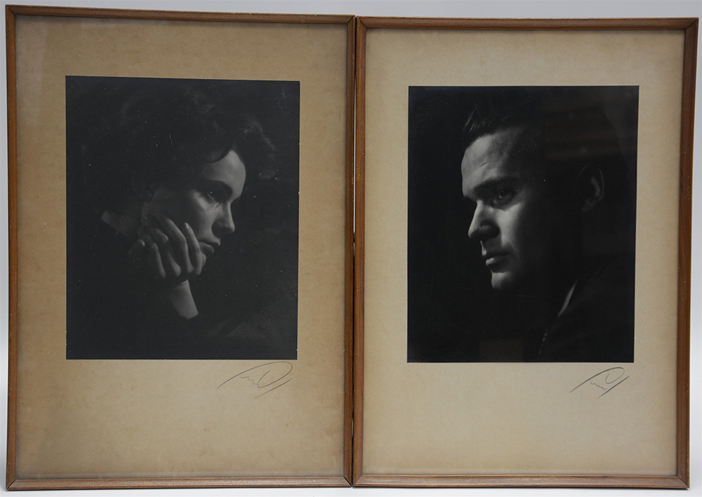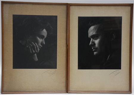 Lotto composto da due ritratti, stampa fotografica in bianco e nero, firmate in basso a destra. Timbro al verso, in cornici (cm 29 x 24)(difetti)
