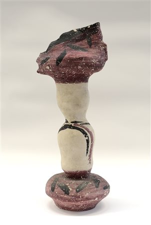 Scultura in ceramica decorata in viola e nero Firmata e datata 93 sotto la base (h cm 75) (lievi difetti)