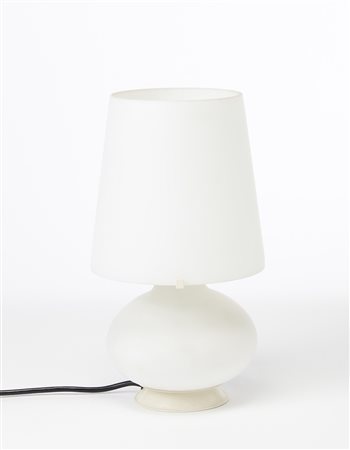 Table lamp model "1853/0" produced by Fontana Arte, Milano 1954. Aluminium painted white and brushed blown glass (d cm 20, h cm 34) (minor defects)