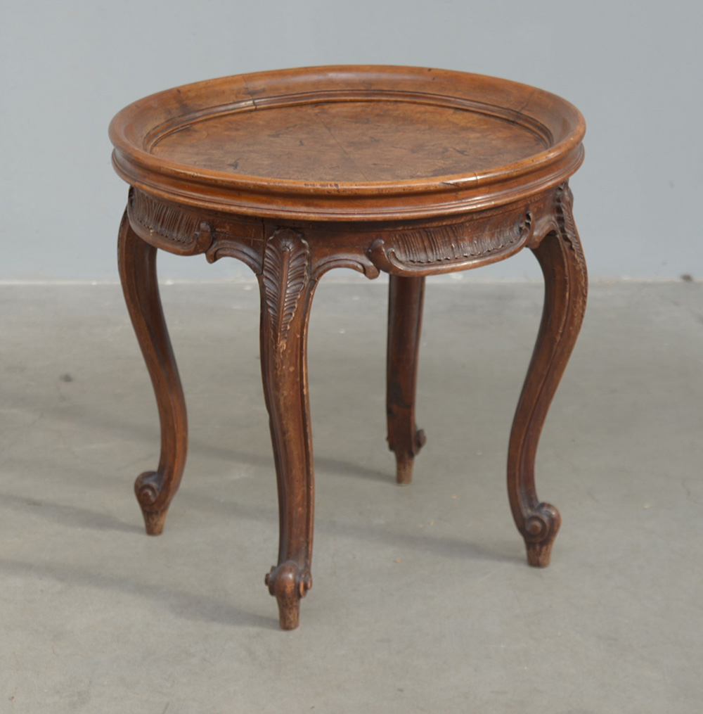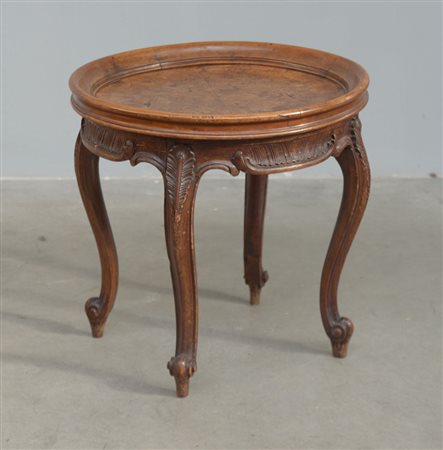 Tavolino da salotto con piano "a vassoio". Gambe e fascia intagliate e sagomate (h. cm 54 x d. cm 60) (difetti)