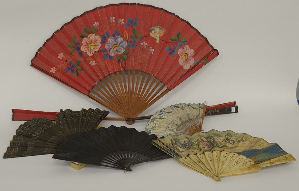 Lotto composto da cinque ventagli di diversa epoca e decoro (difetti)