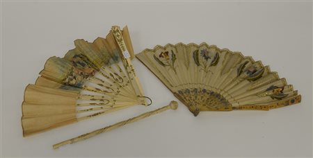 Lotto composto da due ventagli e un manico d'ombrello in materiali diversi. Sec. XIX (difetti)