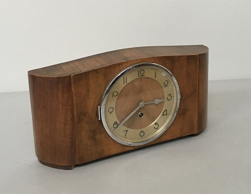 Orologio da tavolo con cassa in legno, movimento con carica manuale (h cm 18,5)