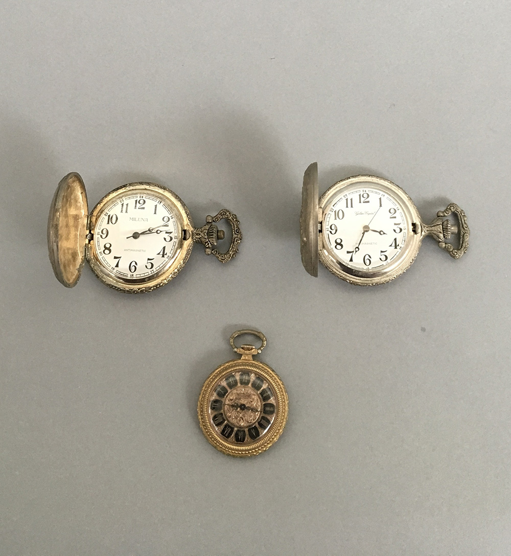 Lotto di tre orologi da tasca in metallo di diverse misure