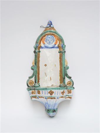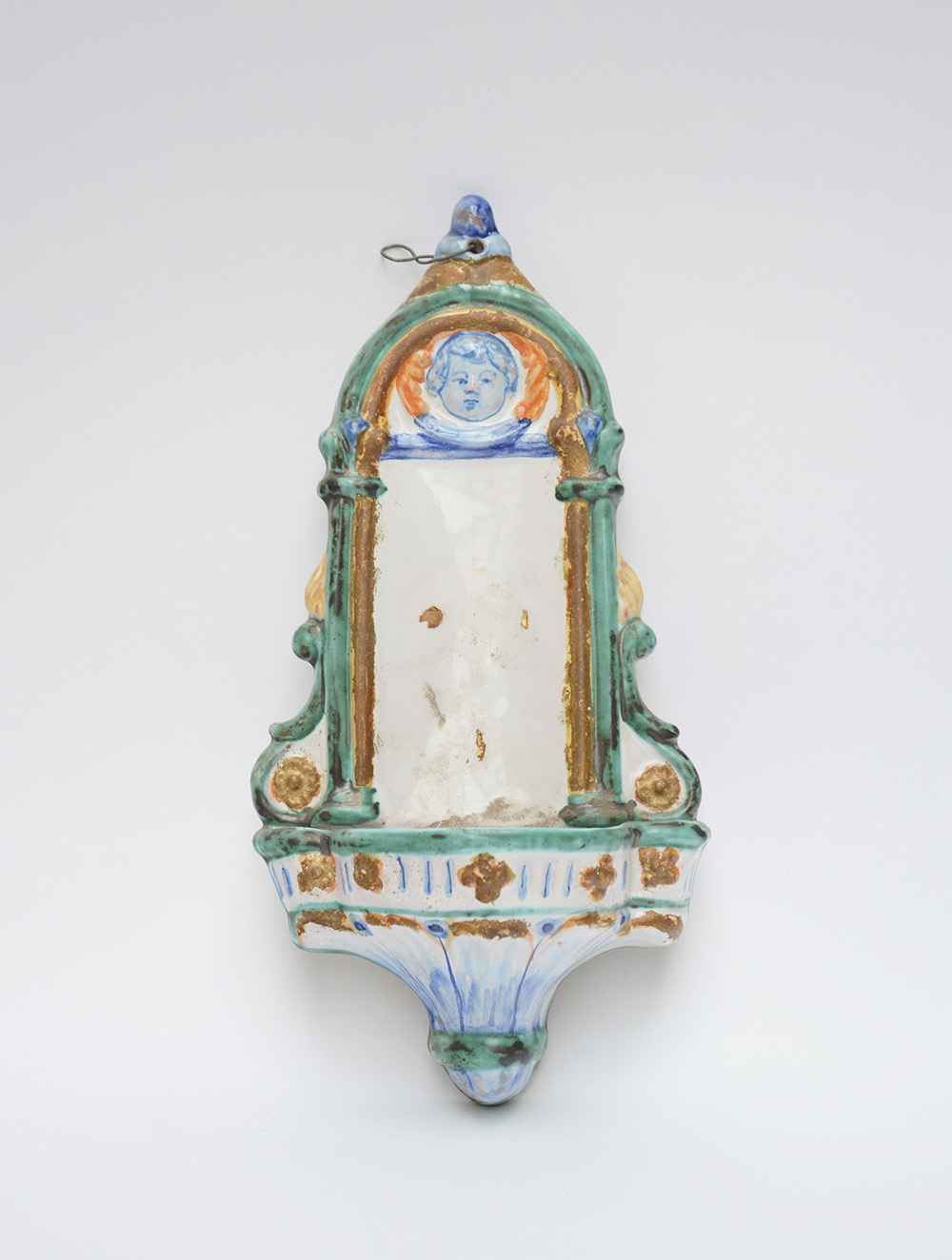 Acquasantiera in maiolica policroma (h cm 30)(difetti)
