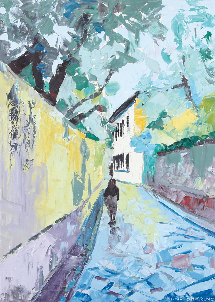 MARIO BERRINO Alassio 1920 Firenze, omaggio a Rosai olio su tela cm. 70x50,...