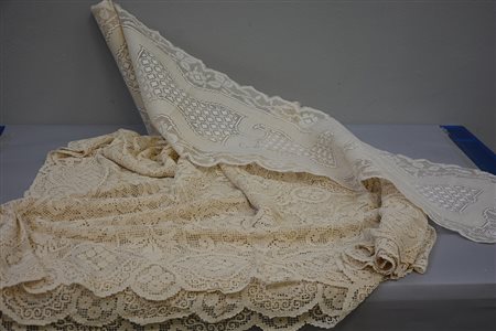 [Tappeti] Lotto composto da una tovaglia in pizzo fillet (l. cm 23) e una...