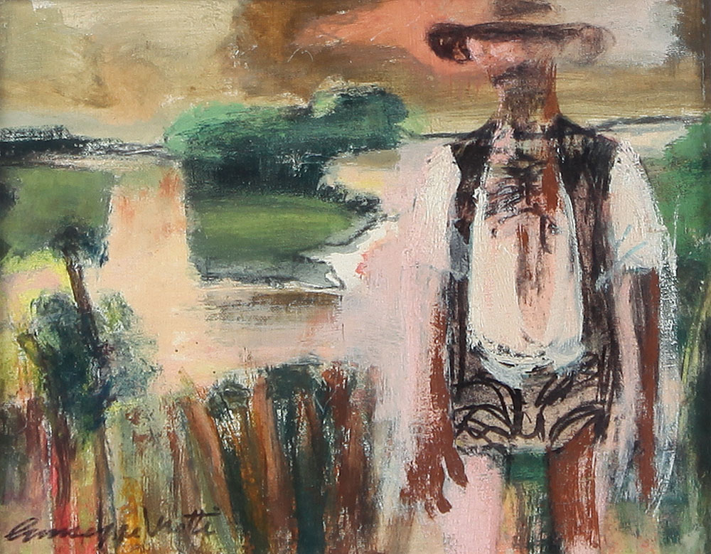 GIUSEPPE MOTTI Arena Po 1908 - Milano 1988 Figura del Po olio su cartone telato cm. 20x25, firma in basso a sinistra.