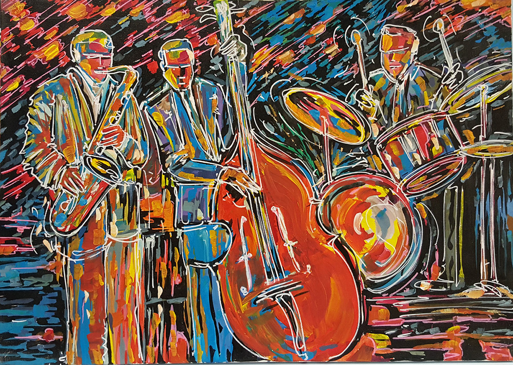 Massimo Costantini, "Dinamismo jazz n. 2", 2015, acrilici su tela cm 50x70, anno, firma e titolo al retro