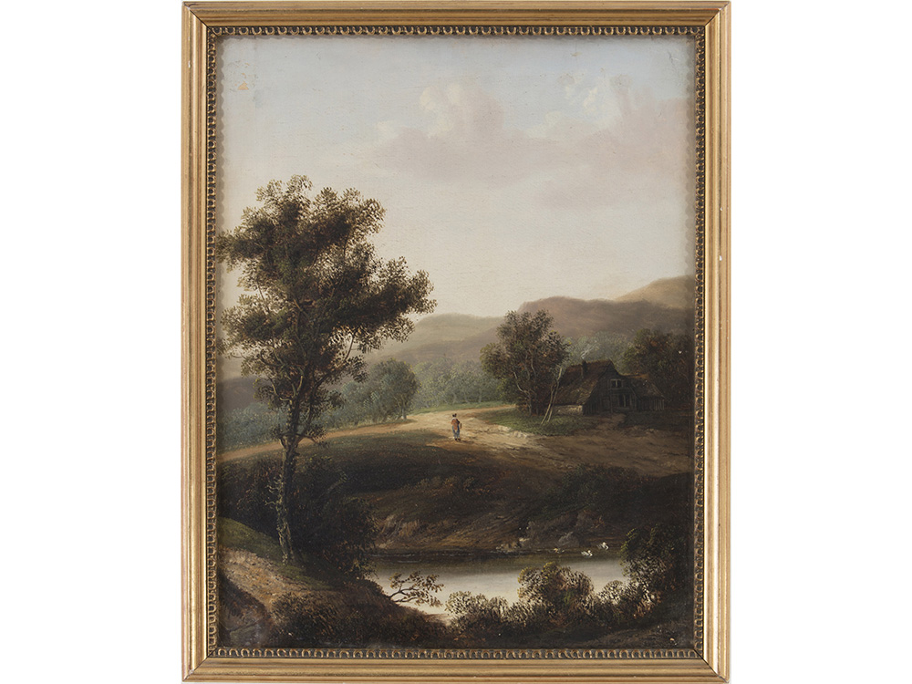 Autore non identificato (XIX secolo), Olio su tela, Paesaggio con figura...