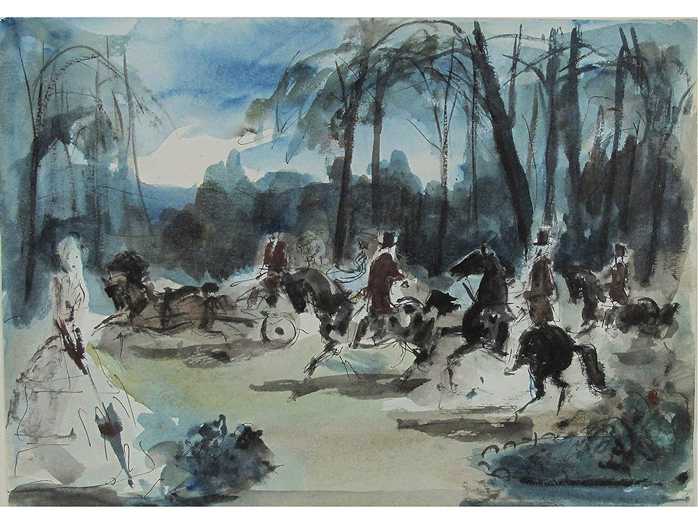 Lot 42 | Leonardo Stroppa (1900-1991), Acquarello su carta, Nel parco 25x35 cm